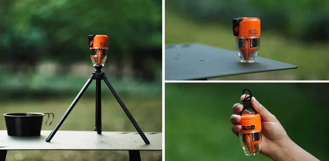 The light is part of the design, not an afterthought. Output is rated at 100 lumens, 200 lumens, and 300 lumens depending on the mode you choose. Color temperature is listed at 4500K which is a bit on the blue side but not harsh in a tent. The translucent shade spreads light better than a bare LED, so it feels more like area lighting than a beam. I see it as a tent ceiling light, a picnic table glow, or a backup light you keep in the top of your pack. If you already carry a headlamp, this may replace the separate lantern depending on your requirements.