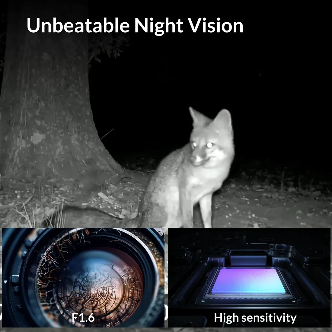 Smart night vision is achieved with 940nm no glow IR, which yields an approximate night range of up to 100ft. The practical upside of no glow is stealth. It is less likely to spook animals, and less likely to announce itself to people.
