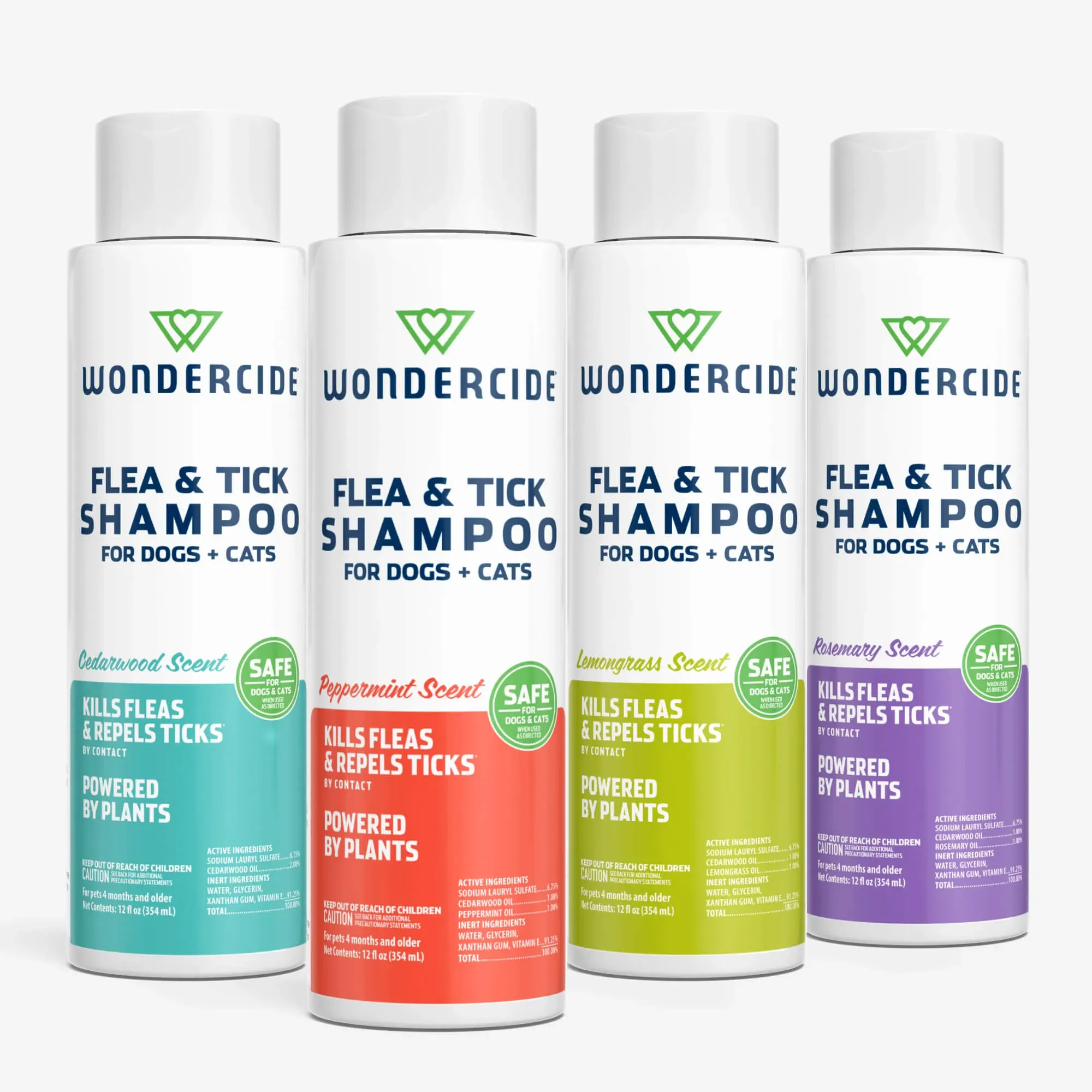 There is a substantial number of options for dogs. The Flea & Tick Spray for Pets + Home is the most popular, and it comes in four scents plus several bottle sizes so you can start with a few of the smaller bottles and try some different scents. Wondercide gives dog owners a ladder of options: spray, spot on, collar, shampoo, yard spray, and bundled kits. If you're not sure where to begin, you can start with a spray and then build into a fuller routine as you learn what you need. One honest note: Wondercide frames the collar as repelling rather than killing, which is to be expected but this is an important distinction.